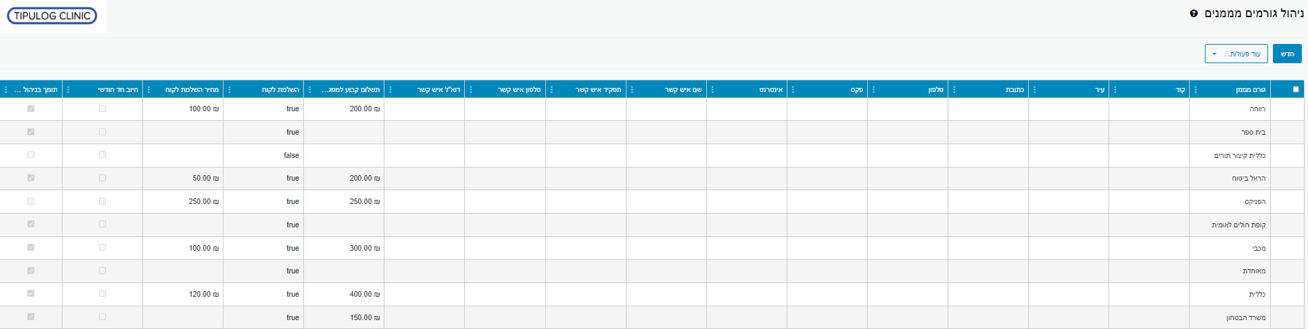 לאחר מכן נגיע לטבלת גורמים מממנים שם נוכל להוסיף גורם מממן חדש או לערוך גורם מממן שקיים במערכת: