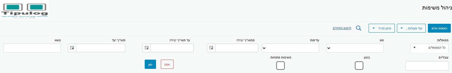כאן ניתן גם לבצע חיפוש למשימות אשר בוצעו, לא בוצעו וסינונים על פי נושא, שיוך לעובדים ועוד.